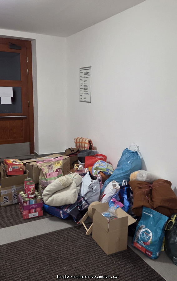 Veliké poděkování opět patří vám všem, kteří jste nezapomněli na naší tradiční sbírku, která vznikla zásluhou předchozí knihovnice paní Drahušky Liptákové. V knihovně se opět sešlo plno potřebných věcí, krmení, hraček, čistící prostředků, textilií - udělaly v útulku velikou vánoční radost.